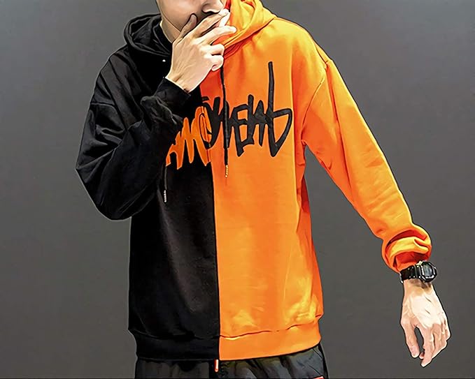 Sweat à capuche Homme, Couleur Noir et Orange, Age 14-18 ans